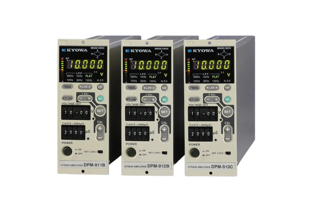 고안정·고정밀 측정을 보장하는 동적 스트레인 측정기(특허 등록)입니다. 입력 스트레인과 출력 전압 값을 디지털 스위치로 설정하기만 하면 되는 간단한 조작으로 감도 설정이 가능하여, 작업 효율이 크게 향상됩니다. 또한 하이패스 필터를 통해 게이지나 센서의 온도 드리프트 등과 같은 느린 변화의 영향을 상쇄할 수 있습니다.