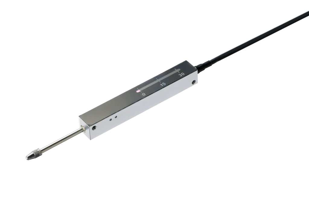 소형이며 스케일이 부착된 인장·압축 겸용 변위 센서(변환기)입니다.