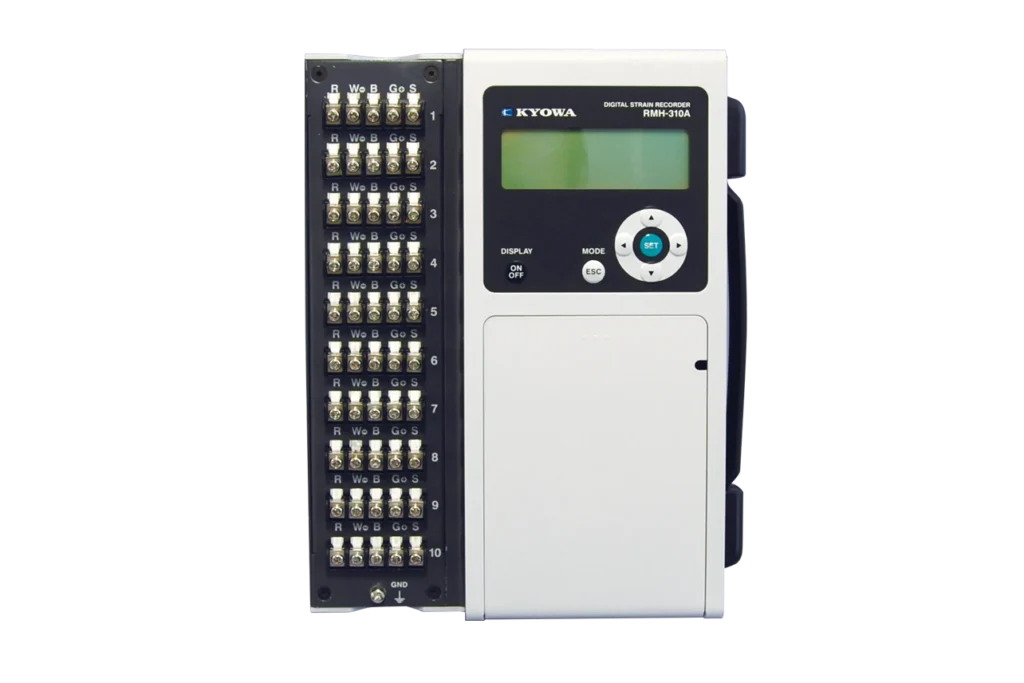 스트레인 게이지식 토목 센서(변환기), 온도 측정 기능이 포함된 토목 센서(변환기), 열전대를 연결할 수 있으며, 10채널 계측이 가능합니다.
