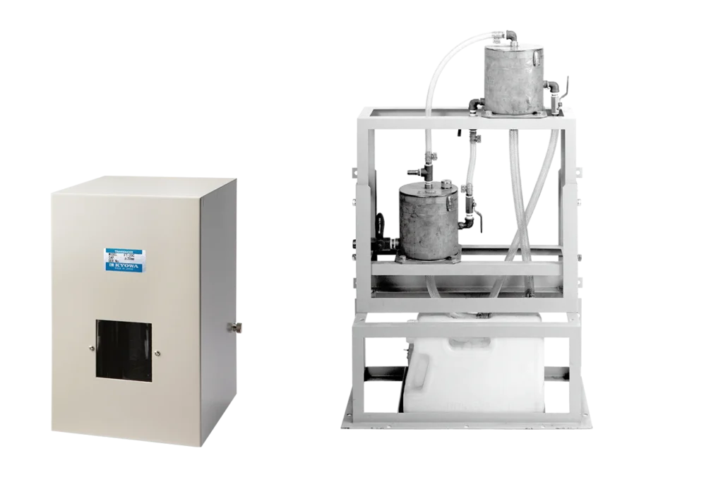 기존 구조물 직하부 또는 인접한 터널 공사·굴착 공사 등이 시공 중이나 시공 완료 후 구조물에 미치는 침하 영향을 측정하기 위한 장치입니다. 본 장치는 기준 수조와 검출기로 구성되어 있으며, 기준 수조는 구조물 침하의 영향을 받지 않는 지점을 기준점으로 고정하고, 검출기는 침하가 예상되는 구조물의 측정 지점에 설치합니다. 두 장치는 연통관으로 연결되어 기준 수조와 검출기 간의 수위 차를 전기적으로 측정합니다.